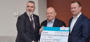 Nach der Fertigstellung soll das neue Bildungszentrum an den Saale-Orla-Kreis als Nachnutzer übergeben werden. Hierfür schlossen Bürgermeister Michael Modde und Landrat Christian Herrgott im Rahmen der Fördermittelübergabe einen entsprechenden Nutzungsvertrag ab.